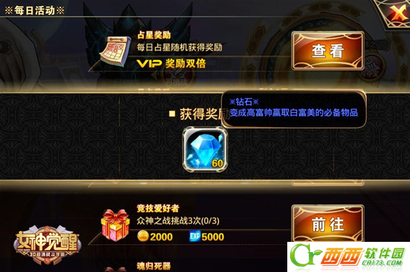 钻石的地位应该不用小编解释大家也是清楚的!那可是高富帅赢取白富美的必备道具呀!在《女神觉醒》中,钻石的获取方式相当多,但是每日上线奖励就有足足280颗钻石供玩家玩耍了!另外还可通过龙之宝藏等方式获得。