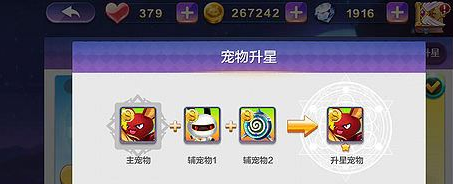 主宠物+辅宠物+辅宠物=升星宠物。