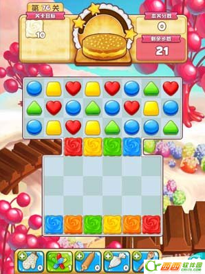 七十六关的目标就是在21步之内消除10个硬奶油,只要能掌握好技巧把奶油消除掉,还是很简单的,通关的话,几率可以有百分之八十的机会,但是想要三星的话,你要在十步的样子完成,就有机会三星了。