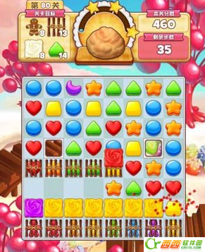 碎碎曲奇80关3星攻略,碎碎曲奇80关怎么过?这关的难点在于姜饼人比较烦,它会一直给你捣乱,而且下面的硬奶油需要时间和耐心慢慢消,如何看准步数尽快给它破掉才是关键。