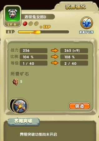 装备武器强化:英雄战斗力百分比提高战斗值,是需要大量矿物材料的。