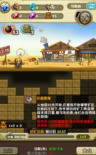 挖矿系统是勇者逗饿龙中非常重要的,挖掘范围可以扩大,会出现不同的宝物哦!矿物可以用来提升佣兵实力,也是强化的主要材料。