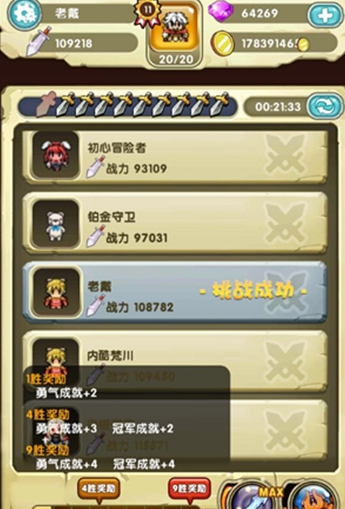 勇者逗恶龙竞技场需要强大的英雄阵容来组成20人战阵,取胜条件不单是看战力的哦,还要看佣兵英雄组合和技能搭配来决定胜利与否的。另外小编要说明的是本作不能查看对手阵容的,玩家们竞技前先准备好一套战队了,这样竞技会更刺激呢!竞技场是每2小时刷新对手的,这2小时中每位玩家有10次挑战机会,战胜1个,4个,9个对手就可以获得额外奖励,当玩家的挑战胜利达到一定次数会解锁神秘超级神器!