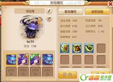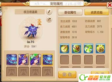 玩家的第二只宝宝,如图可见,这是一只合成的产物,可惜只有3技能,玩家看着资质不错,没抛弃他,也没打攻击兽决,就这样任务用用。