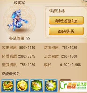 (2)鲛将军看似一般,实则能攻能守。不过55级这个等级毕竟是过渡的一个等级,有这样的宝宝基本上能够满足这个等级任务和活动的需求了。