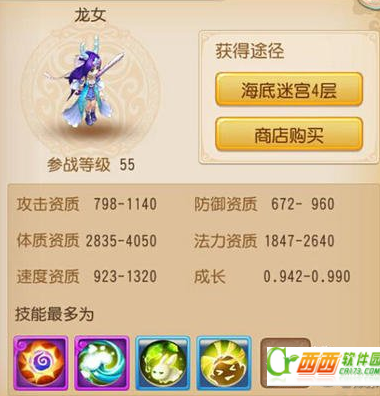(2)龙女满技能是4个,分别是高级水属性吸收、水攻、神佑、驱鬼。从技能上面来看确实不怎么样。但是如果玩家想着稍微改造一下的话这个宝宝就相当不错了。
