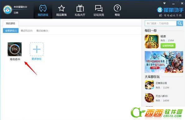 第三步,选择游戏进行下载,不要关闭右下角角标。也可以点击安装本地游戏的apk文件。