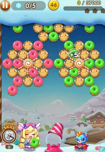这里多了一个死亡蜂巢的障碍物。需要注意不要碰到。中间的两个半个的摩天轮,按照颜色分别消除即可。