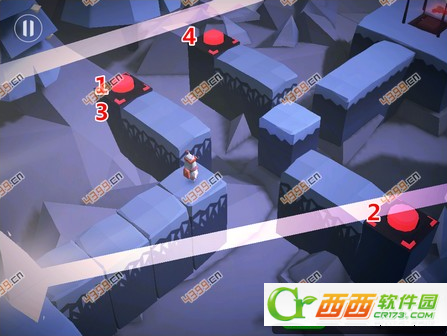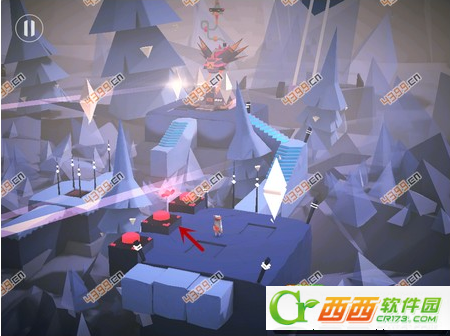 4.再次遇到机关台阶左一前进,右一左一前进,左二前进,接着就可以踩方形按钮激活最后一个水晶机关,进入下一章节啦~