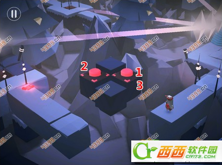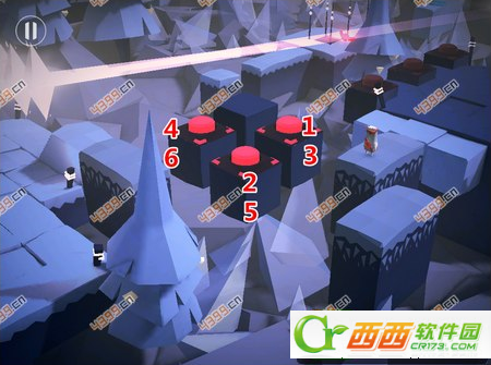 1.先在扫描仪扫描下激活圆形按钮,点击圆形按钮后解锁水晶机关,跟随小精灵前进,到达机关台阶,按钮顺序为右左右左,记得第二次按完按钮要向前走一步。