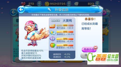 小编我大黄鸭到手马上秒到满级,属性如下: