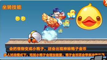 特殊技能:会把怪物变成小鸭子增加能量,还有吃到鸭子大头像会有神秘效果