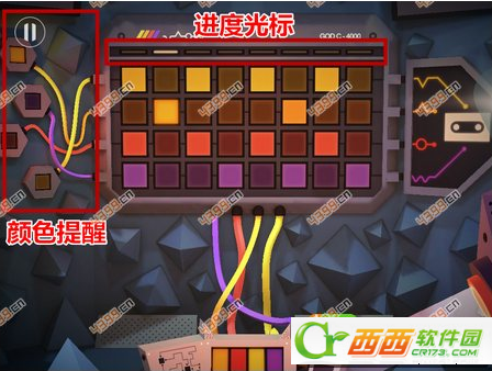 4.注意屏幕左边的颜色与进度光标的提醒,然后将进度光标下对应左屏颜色点亮,即可通关。