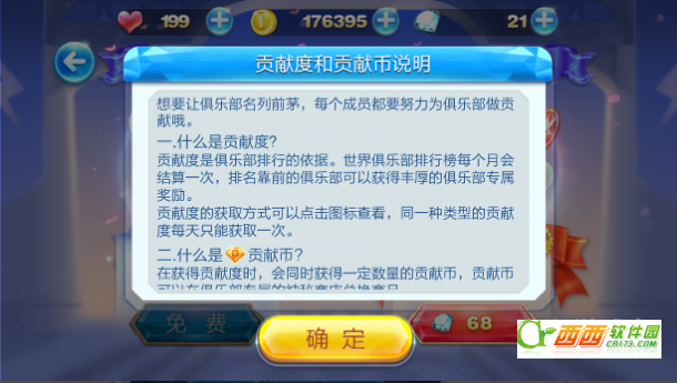 7、创建俱乐部获得100贡献度,100贡献币8、没参加一次俱乐部对战获得21点贡献度,14点贡献币