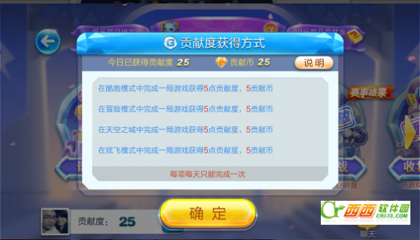 1、在跑酷模式中完成一局游戏获得5点贡献度,5点贡献币