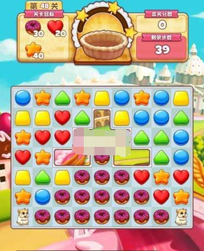 碎碎曲奇48关3星攻略,碎碎曲奇48关怎么打?本关的难点在于仓鼠,因为咱们看任务目标就可以知道,目前图里的甜甜圈数量是不够30个的,也就是说消除之后会降下甜甜圈,一旦甜甜圈和目标曲奇一直被仓鼠吃,想3星就麻烦啦。