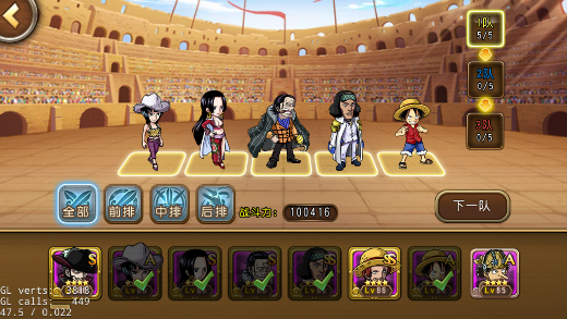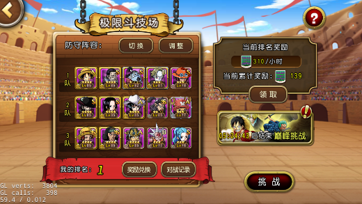 挑战开始后,战斗将自动进行,伙伴技能自动释放。在极限斗技场上是不可以使用船炮的哦!对战双方按照各自三支队伍的顺序依次对战。三局两胜制,挑战超带感!(测试版截图,请以实际游戏为