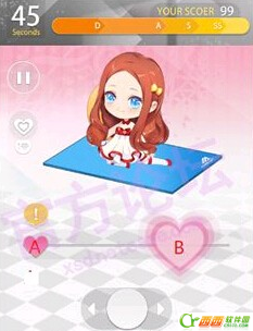小桃心A的位置随着我们的移动而改变,大桃心B则随机出现在标尺的某个地方屏幕左上角会倒计时,旁边显示玩家的即时分数和对应等级。