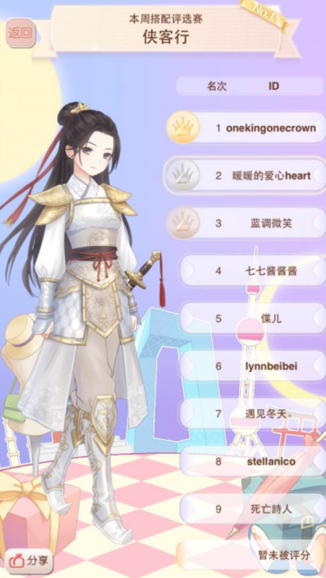 又是星期六到来, 周末大家是不是有什么出玩的好计划呢,而在星期六定期会变化的就是暖暖环游世界的搭配评选赛了,这期的搭配评选赛的主题是侠客行,这几期的搭配评选赛都是带有一点古装或者男装的风格呢,提到侠客,自然就想到了古代那些快意恩仇的侠客们,那么在暖暖环游世界中要怎么搭配才能体会出侠客行的风格,才能赢得高分呢,我们一起来看看吧。