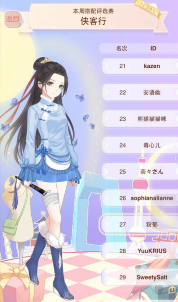 3.提到侠客就会想到古装,就会想到那些飘逸翩然的侠士们,所以一套带有一点仙侠气质的装束也是可以获得一个不低的分数的。