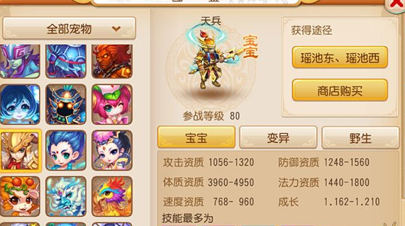 在天兵之前,虽然血宠的重要价值已经为人所承认,但是由于成长不高、技能搭配不佳、资质不出众等原因,绝大多数低级血宠难以摆脱鸡肋之名。但是天兵不一样。首先他有两个血宠高级技能,虽然市面上相关要诀售价不高,但蚊子腿也是肉。其次他拥有80级以及80级以下最高防御资质,而且体力资质也相当不俗。在血耐宠颇为流行的手游中,一只四技能天兵可以说一本高级神佑下去就是成品,或者和凤凰炼妖搏高级神佑也是不错的选择。