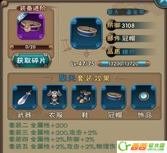 (一共400全属性 4%防御 2%攻击 物理减免8%) 防御套 给前排抗伤害的人物使用 【如果没有真灵套 奶妈亦可使用此套装】