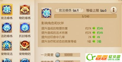 答:看图上攻法修炼的介绍,伤害、命中、治疗效果的加成都是同时影响角色和伙伴的,也就是说攻法修炼等级越高所带来的提升对角色本身有作用,同时还对我们选择的助战伙伴有加成。