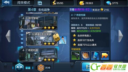 全民突击4-7关绝密档案3星攻略,巧用战车连杀拿3星,本关需要10连杀生化兵并且不能受伤太多,所以本关就需要用好战车掩体来进行防御,其实一般情况下来说这种关卡只要战斗力够就好打,战斗力不够,露头次数多了才容易被打。