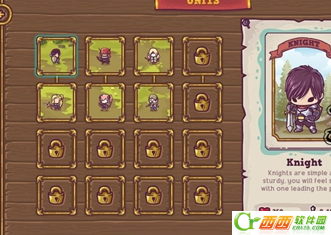 近战英雄用的武器是短刀和盾牌,血量在小小守卫者游戏中算是比较厚的,有250生命值,攻击能力一般9-10的值。前期是很给力的近战,虽然输出不是很给力,但是结合弓箭手能达到很好的效果,优先站位在前排做肉盾和攻击中输出。