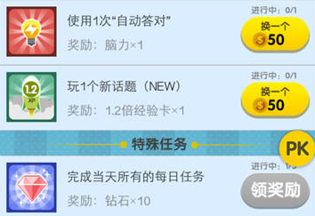 “脑锻炼”话题单局分数达到1500以上10次,奖励18钻石。