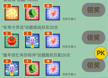 “童年回忆有你陪伴”话题随机匹配20次,奖励18钻石。
