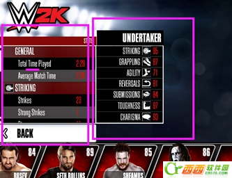 STATS:统计系统,可以看到巨星角色的一些信息,有Sheamus史蒂芬法雷利,承担者,兰迪奥顿,凯恩,丹尼尔布莱恩和大秀哥等等。