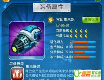 装备说明:星能战甲,军团套装之一,装备后可以增强生存和防御能力