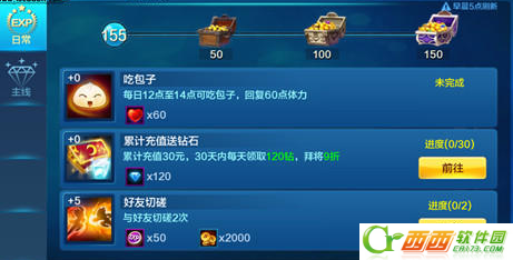 3、日常任务,玩家在通关宛城后一关之后就可以开启任务系统了,主线任务一般都是钻石、材料、金币奖励,而日常任务好多都是大量的主公经验值奖励,一般奖励都是60、100左右,差不多通关十次副本才可以获得那么多经验值,所以玩家一定要把握日常任务来提升主公等级。