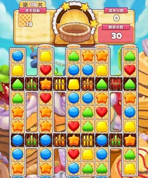接着就是找寻机会消除威化饼,既然可以移动,就可以给自己制造机会出来,所以我们的每一步都要考虑到后面会发生什么。只有这样才能给我们省下很多步数。