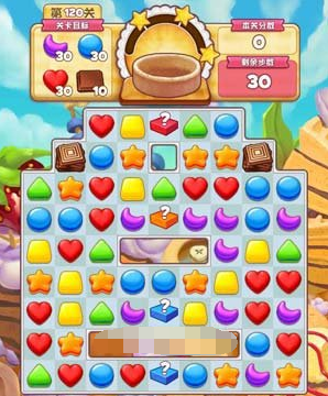 其实大家可能第一反应就是这个关卡的难点主要就是障碍物,其实在小编晴空看来却不是这样,真正可能会让你失败的难点是普普通通的曲奇。因为这个关卡中玩家需要消除的曲奇非常多,多达九十个,而步数只有三十步,关卡又比较分散,所以想要完成目标真的不容易。