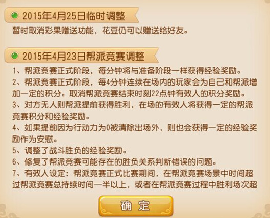 剩下的可以算是帮派竞赛相关的修改,之前Bug也是比较多的,打分多的一边居然还会输,大家也可以多等等吧,不完善的功能玩法放出来要坑吐血的。
