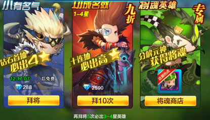 钻石单抽:钻石单抽是有免费抽取的,但是有时间限制的。玩友们使用288钻石,可进行一次单抽,钻石首抽必得四星英雄。