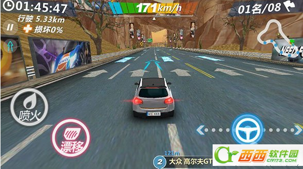 想让赛车漂移,首先要让车头有个弯曲的角度,大概偏离跑道中线正负5度以上,然后按下漂移键,车就可以漂移,漂移成功的话会看到地上有黑色的轮胎印。