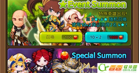 100宝石档:随机3星-6星,10连抽送2次,必出2个4星。