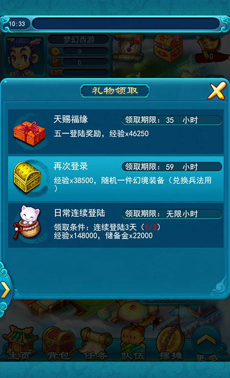 活动介绍:活动期间,每天登陆口袋版领取日常奖励,包含经验及“天赐福缘”葫芦。前往宝库界面开启葫芦,必定获得物品奖励哦!