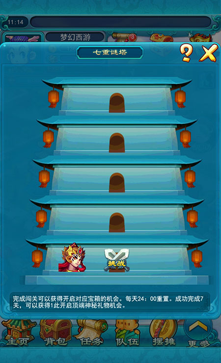 1.玩家需要从1-7关依次挑战,活动期间每天24:00重置挑战进度