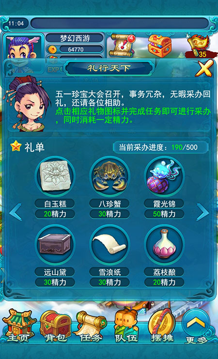 活动介绍活动介绍:五一珍宝大会召开,事务冗杂,珍宝夫人特委托三界人士相助,完成采办任务。活动期间,每天凌晨重置采办进度,每日采办进度达到500为满。