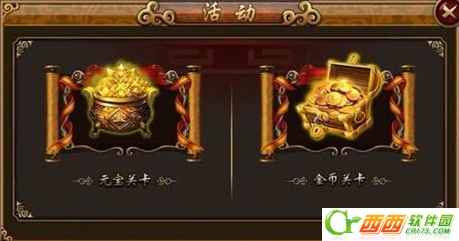 活动关卡:这是研发团为玩家提供赚取元宝或金币的一种途径。点击活动关卡后,玩家通过消耗元宝/金币的方式来开启关卡的内容,通过的关卡越多,到最后结算元宝、金币的数量越大。在游戏中缺乏元宝、金币的玩家有福了!