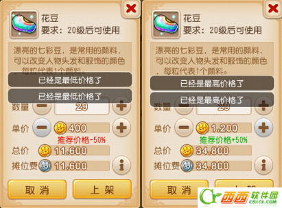 花豆与彩果的作用都是改变角色衣饰的颜色,但由于花豆的颜色过于平常,故价格相比较低。假如有喜欢染花豆颜色的玩家,不凡现在就买,因为现在的花豆摆摊价格基本都是400金币(系统最低价)