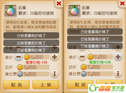 系统给彩果的摆摊价格区间为2500-7500,而5000金币是推荐价格。这里要明确的一点是商城卖的彩果需要68仙玉,相当于6800金币。
