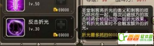 圣堂刺客熟练掌握折光的奥义,每次闪避敌方的攻击时将会给自己加一层折光效果,已有折光效果时不会触发额外的折光,圣堂满级状态下,反击折光可以最多抵挡9000点伤害。