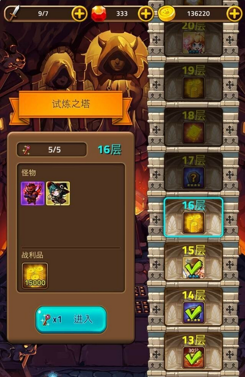 2.已经通过的层数可以重复挑战,但奖励更换为100X层数的金币。
