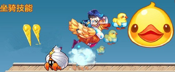 大黄鸭这一坐骑是拥有”坐骑技能“的坐骑,其坐骑技能——把怪物变成小鸭子,神秘的鸭子金币,各种爆分技能,绝对让你体验到高分的快感;在多人对战模式下,吃到的小鸭子会增加能量,鸭子金币会带来冲刺的效果,真是不想拿第一都难啊!心动的你不如现在就开始行动把我们的”大黄鸭“抱回家吧!