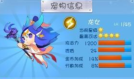 小编点评:龙女的一个防御性的太阳宠哦,龙女的技能是相当不错的哦,它的技能水幕天华能释放抵消敌方弹幕的泡泡而且还能很好的低档侧边威胁,能提升生存的能力哦,龙女的极少有拥有两种弹道的宠物哦,喜欢龙女的玩家可千万不要错过这次获得龙女碎片的机会哦。
